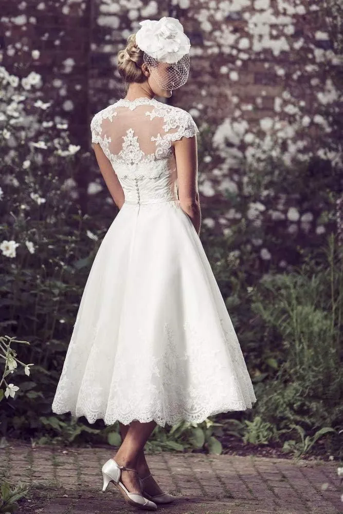 Beach Short Wedding Dresses Tea Length Bride Dress Cap Sleeves Sweetheart Lace Robe De Mariée Vestido De Novia A-For Women